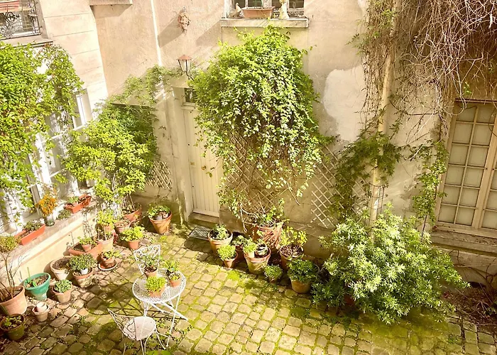 Bel Appartement Ancien Sur Cour Verdoyante overlooks the garden and comprises a balcony with climate control.